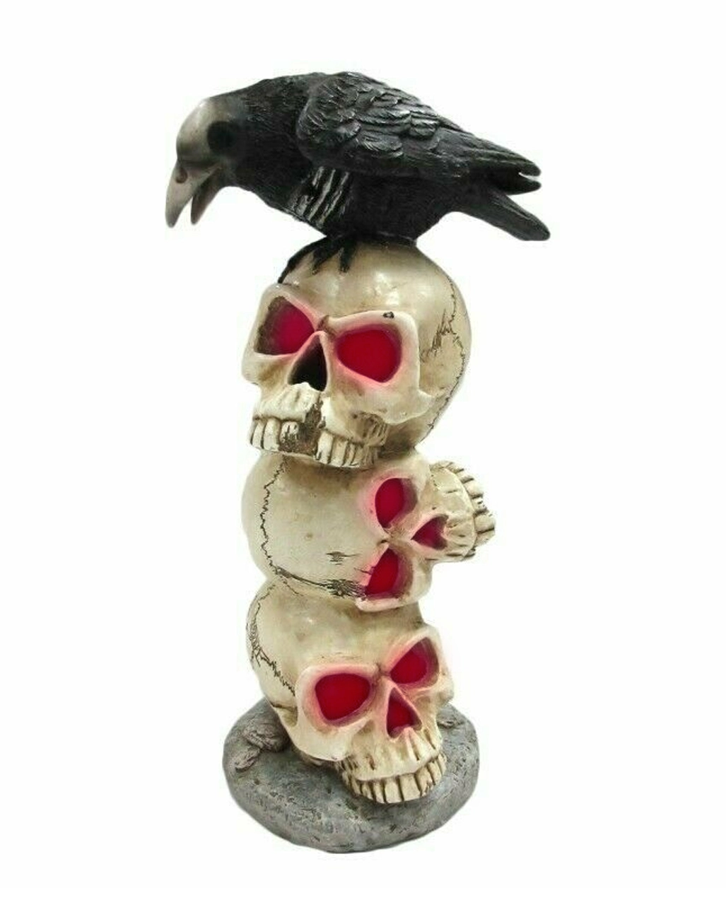 Rabe auf Totenschädel Turm mit LED Licht 29cm